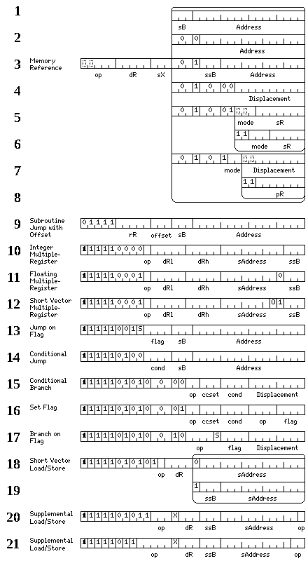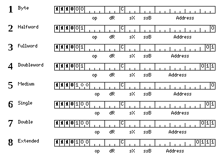 Lines 1 through 8 show the eight possible formats for 32-bit memory-reference instructions.