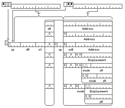 In addition, this type of header includes a A bit. If this bit is set, the instructions in the block belong to a modified version of the instruction set, in which paired short instructions are guaranteed to both be able to execute in parallel. As this type of paired short instruction requires more opcode space than the regular 15-bit instructions, the standard memory-reference instructions are also modified by being restricted to aligned operands, so as to make more opcode space available.