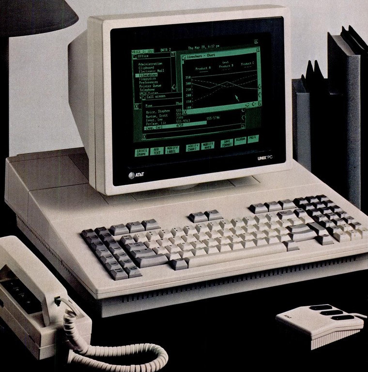 In March, 1985, American Telephone and Telegraph (AT&T) came out with their UNIX PC, shown at right. This computer was based on a Motorola 68010 processor.