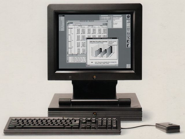 The Model 735 Apollo workstation pictured at left, also from 1992, used the PA-RISC microprocessor, Apollo having been acquired by Hewlett-Packard.