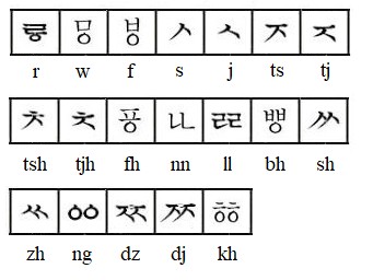 Additional jamo were also devised to permit the transcription of the initial consonants of Chinese syllables, as illustrated below: