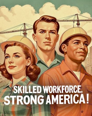Although I am no fan of Donald Trump, fairness compels me to show you this image I found when, after encountering discussion of a series of posters from the U.S. Department of Labor, which were, to my eyes as well, eerily reminiscent of Nazi-era posters, I went looking for the original images. On the Facebook page of the Department of Labor, I found this image, which also belonged to the series: