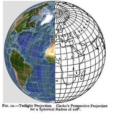 The Clarke Twilight projection is still available today on programs such as G.Projector, as shown by this image: