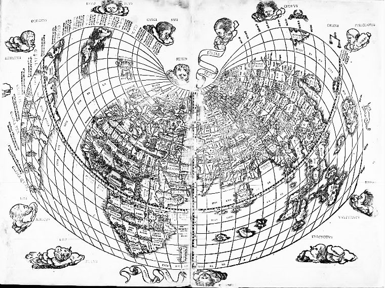 Above is an image of the map in question, from his 1511 edition of Ptolemy's Geography. This map has some of the New World added to it, and appeared at the very end of the volume, after the maps which were, presumably, based solely on Ptolemy; this was, I would therefore suppose, intended to make the work more useful to the reader by making a contemporary view of the world also available.