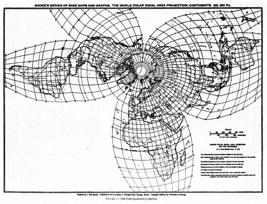 However, there has been one notable development of this projection. J. Paul Goode, who originated the idea of interrupting the Sinusoidal and Mollweide projections, and then developed the Goode Homolosine projection, also used Werner's Projection as the basis of the Goode Polar Equal-Area Projection.