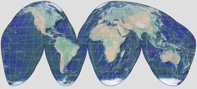 Speaking of Philbrick's Sinu-Mollweide, I would be remiss if I did not mention one of the most famous developments of the Mollweide projection: