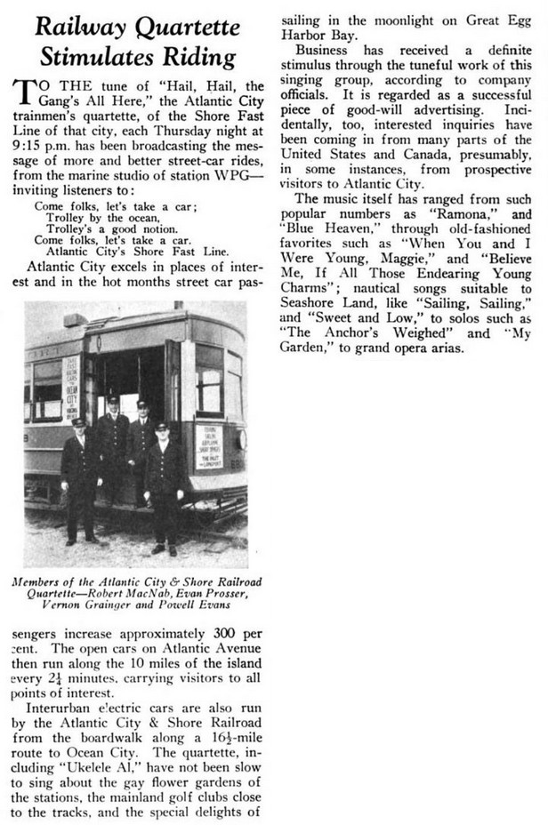 Incidentally, since "My Blue Heaven" by Walter Donaldson and George A. Whiting dates from 1927, that probably is the song referred to as "Blue Heaven" in this article from the October, 1928 issue of AERA, the monthly magazine of the American Electric Railway Association.
