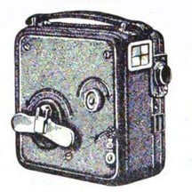 Shown at right is the Ciné-Kodak Eight. This camera was introduced in 1932, marking the introduction by Kodak of 8mm film to make home cinematography more affordable.