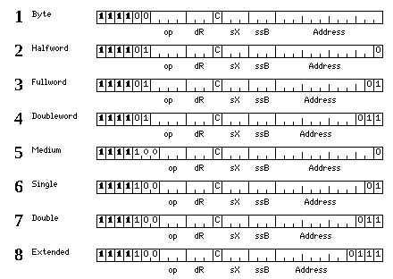 Lines 1 through 8 show the eight possible formats for 32-bit memory-reference instructions.