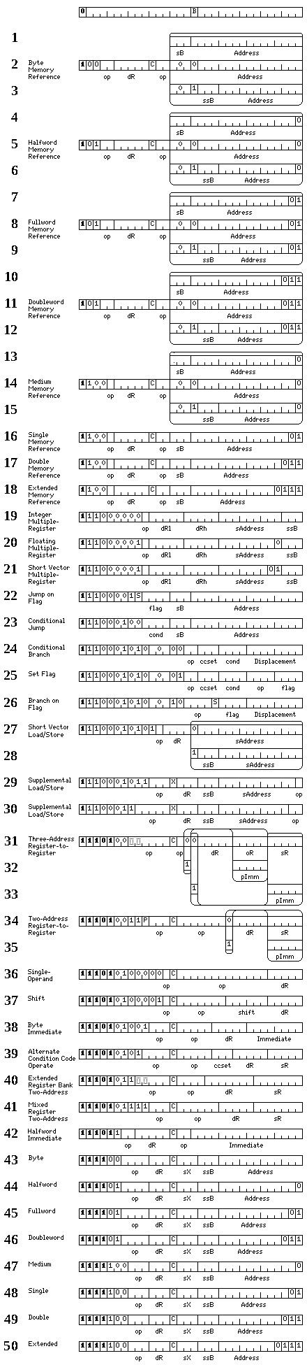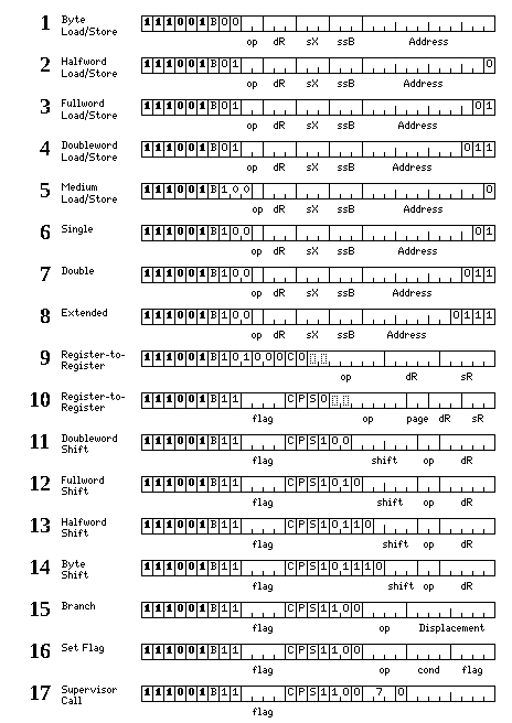 As well, lines 7 through 11 of this diagram show the supplemental memory-reference instructions; these allow load and store operations for additional data types for which operate instructions, but not memory-reference instructions, are available in the basic instruction set.