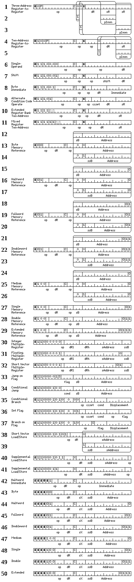 Actually, there may be an issue with that last limitation, because the types normally dealt with by this category of instruction may include types that are 48 bits long, which only have natural 16-bit alignment. The instruction format in line 20, with a smaller opcode field, addresses this limited number of cases,