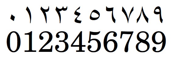 Thus it is that while in the Arab world, numbers are often written using the form of the digits shown in the top row of the diagram above, those in the bottom row, the ones we familarly use every day, are commonly referred to as Arabic numerals.
