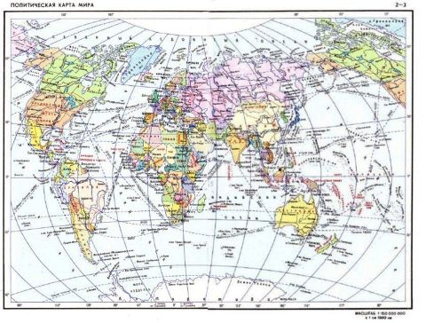 Here, in greatly reduced size, is an actual example from a Soviet atlas of the use of this projection: