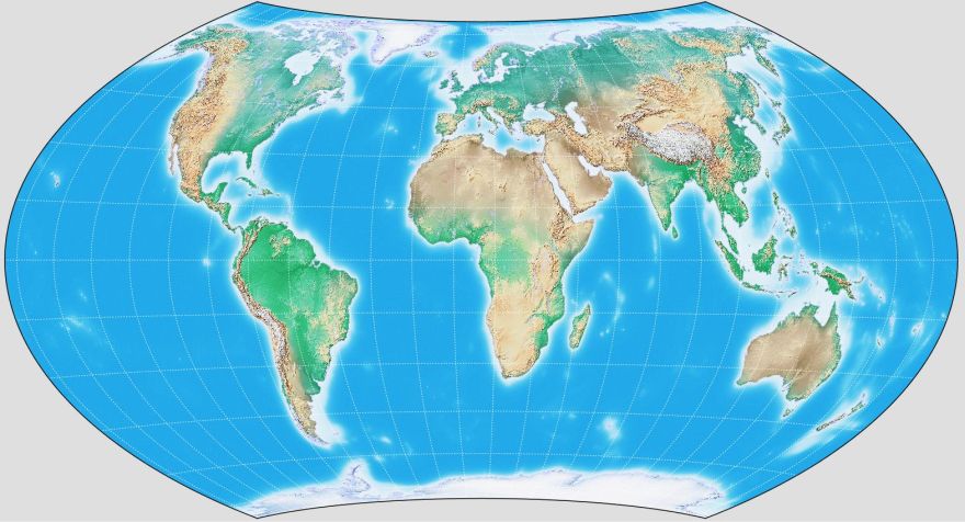 This map projection is an equal-area map projection which displays the world on an ellipse.
