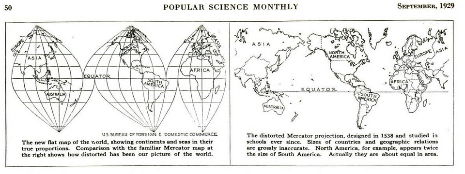 we can see that it has long been the case that the large inequalities of scale in the common Mercator projection were recognized as misleading, and an equal-area map projection advocated as a superior alternative.
