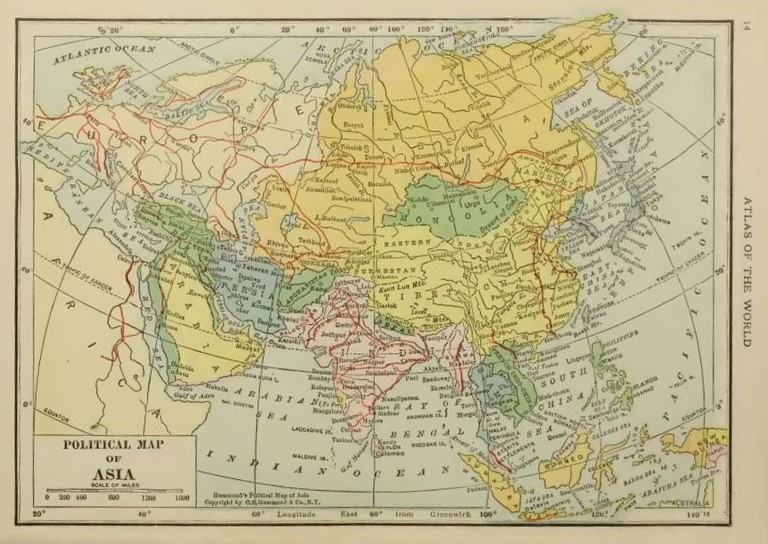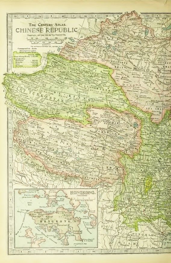 Here, Sinkiang is labelled "Eastern Turkestan", and Tibet is shown as including Qinghai. It dates from before Tannu Tuva existed, but after the area was taken from China by Russia, and so that area is included within Mongolia.
