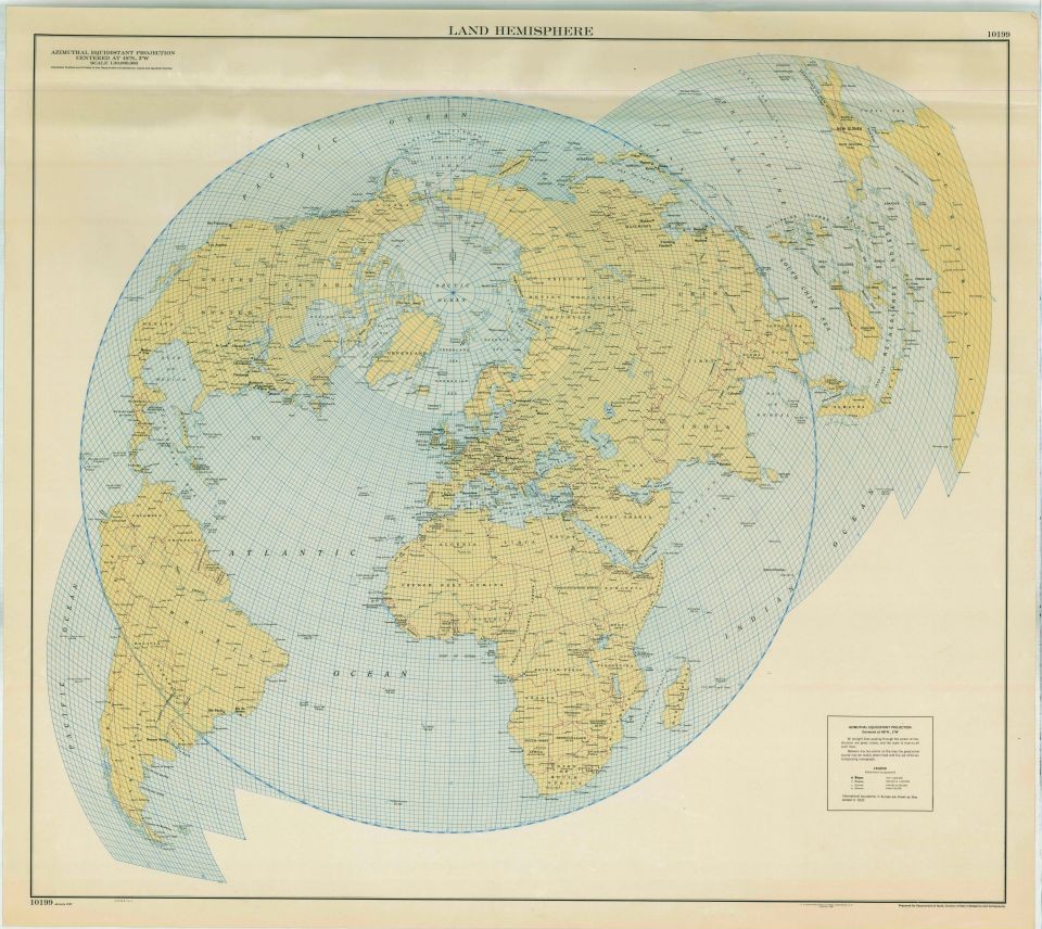 The central portion of this map is noted to be on the Azimuthal Equidistant projection. This map was prepared in 1947, but the borders on it are the prewar borders as of 1937. It was prepared for the CIA, and it was declassified much later than its preparation.