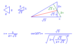 The distances between Ammann bars in the Penrose tiling are in the golden ratio, (1 + sqrt(5))/2. In this tiling, the distances between rows of rhombs are in the ratio of (4 cos(15°) + sqrt(2))/2 cos(15°), and since the cosine of 30 degrees is sqrt(3)/2, it is possible to convert the cosine of 15 degrees to radicals as well;