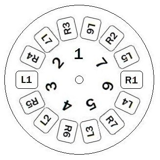 The reels contained seven stereo pairs of images, an odd number, so that after the reel turned around halfway, the remaining images would lie between those already viewed. The diagram shown at left may make this clearer.