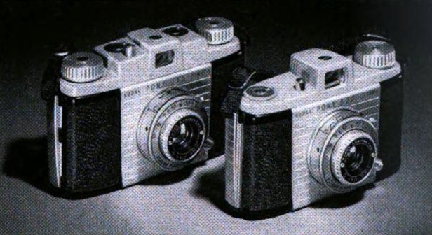 Pictured here, therefore, is the Kodak Pony 135 camera; on the left, an example of the Model B version of that camera is shown, and on the right, a Model C version is pictured.
