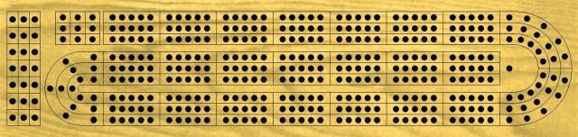 Ordinary Cribbage boards simply divide the tracks of holes into which the pegs are placed into three rows, connected by semi-circular portions of the path. The normal scheme for such a board is shown below: