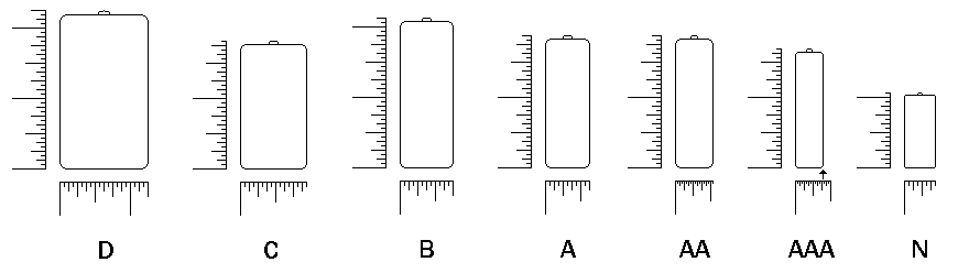 Note from the diagram that these battery sizes were originally defined in terms of inches, even if they are now specified in millimetres.