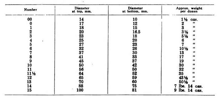 I had not thought that listing the sizes of corks or bottle stoppers would be all that interesting to be worth the trouble of finding out to include here, but as I was able to find a list of the sizes of rubber stoppers for use in chemistry without too much difficulty, here it is: