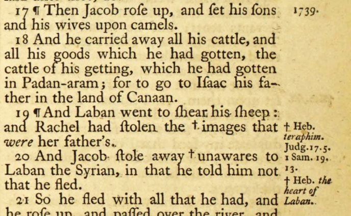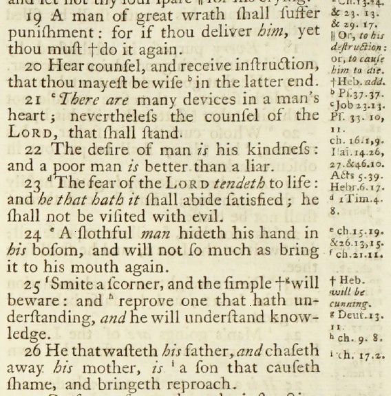 John Baskerville printed two editions of the Bible, the first, in 1763, had marginal references, but no notes; the second, in 1769, had notes, but no marginal references.