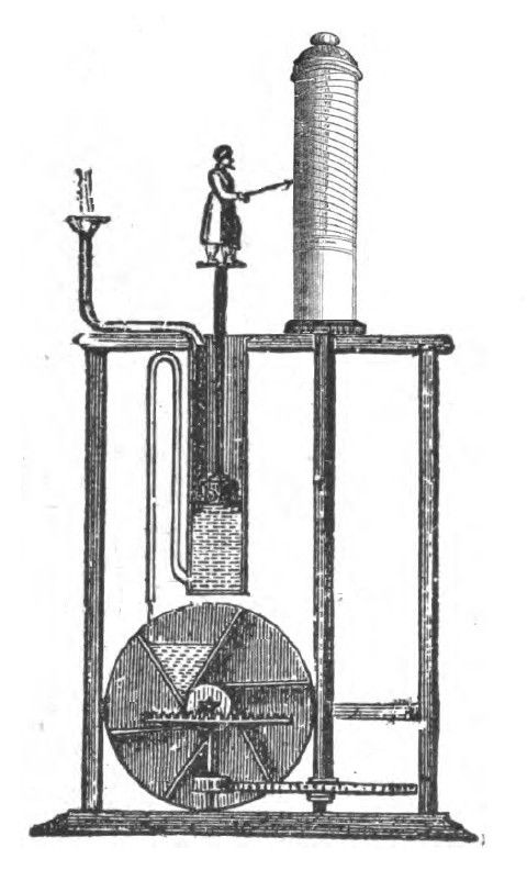 On the right, mashed together from two old drawings, neither of which satisfied me by itself, is an illustration of the design of an ancient water clock designed by Ctesibius.